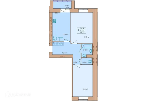 2 комн. квартира в Костроме в ипотеку от 27 690 руб/месяц