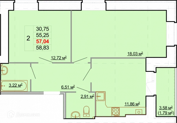 2 комн. квартира в Костроме в ипотеку от 26 626 руб/месяц