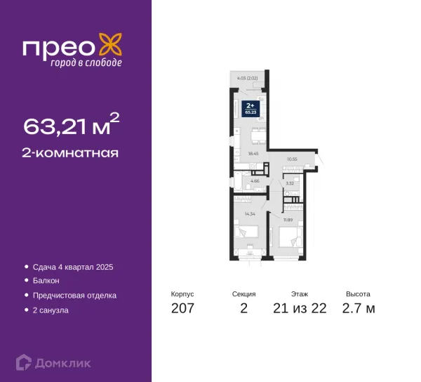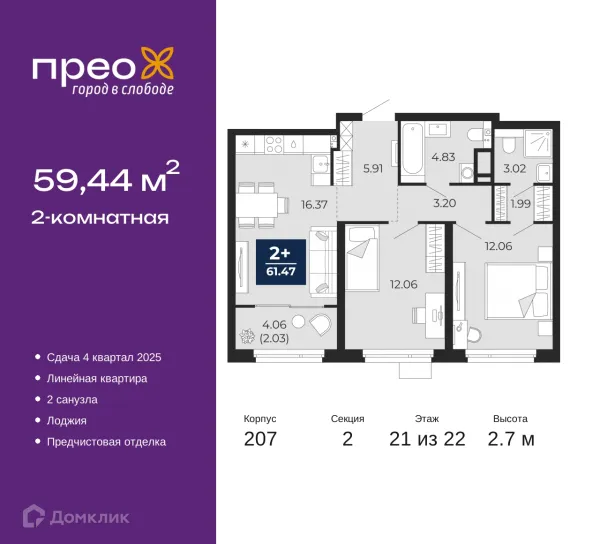 2 комн. квартира в Тюмени в ипотеку от 59 203 руб/месяц