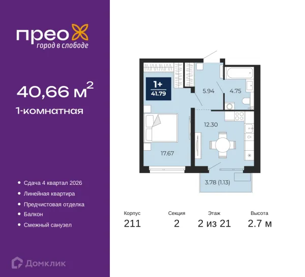 1 комн. квартира в Тюмени в ипотеку от 40 473 руб/месяц