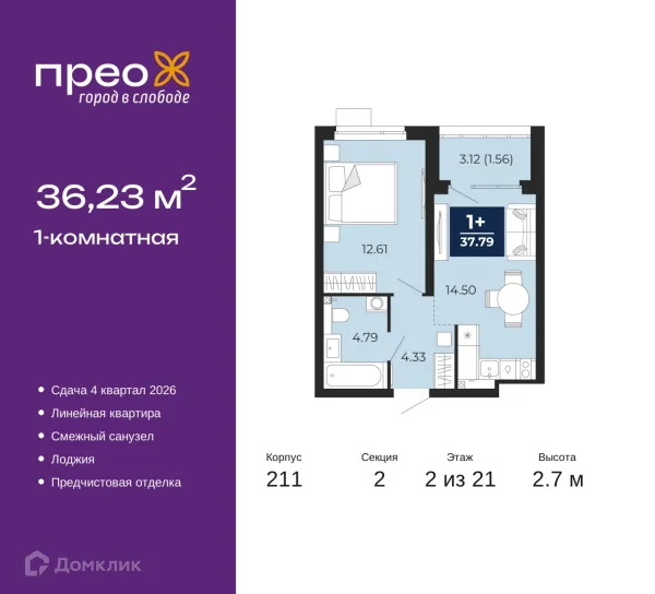 1 комн. квартира в Тюмени в ипотеку от 40 196 руб/месяц