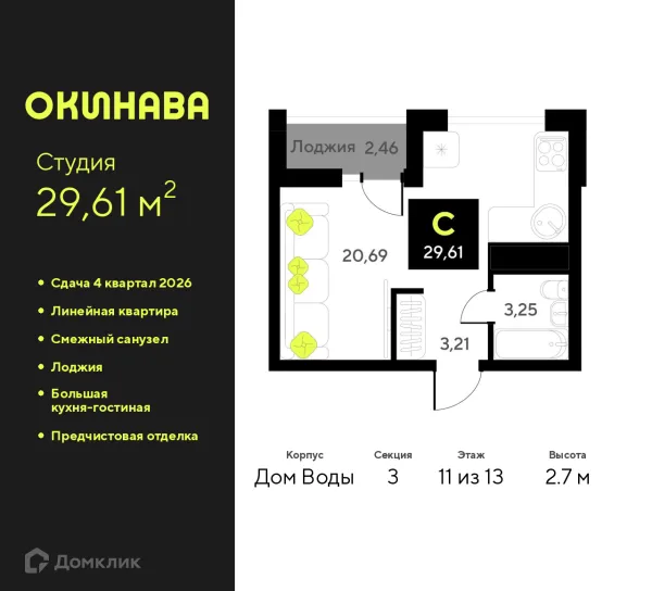 Студия квартира в Тюмени в ипотеку от 44 145 руб/месяц
