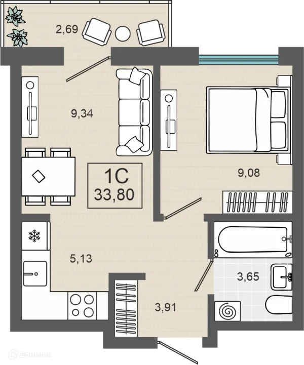 1 комн. квартира в Тюмени в ипотеку от 32 908 руб/месяц