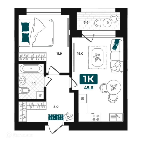 1 комн. квартира в Тюмени в ипотеку от 46 374 руб/месяц