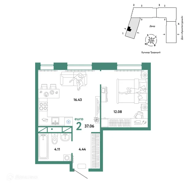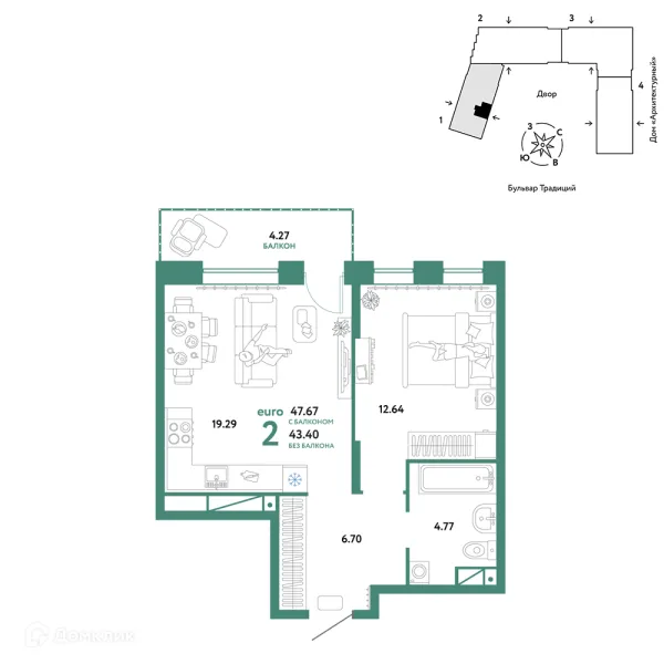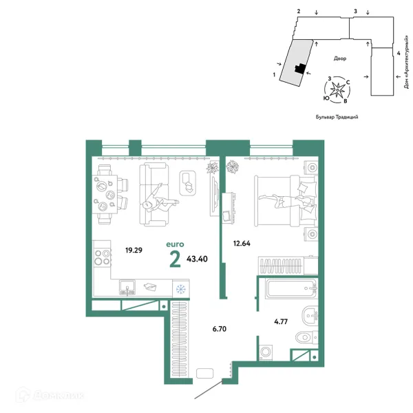 2 комн. квартира в Тюмени в ипотеку от 48 215 руб/месяц