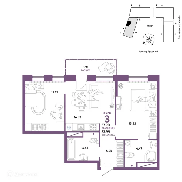 3 комн. квартира в Тюмени в ипотеку от 62 695 руб/месяц