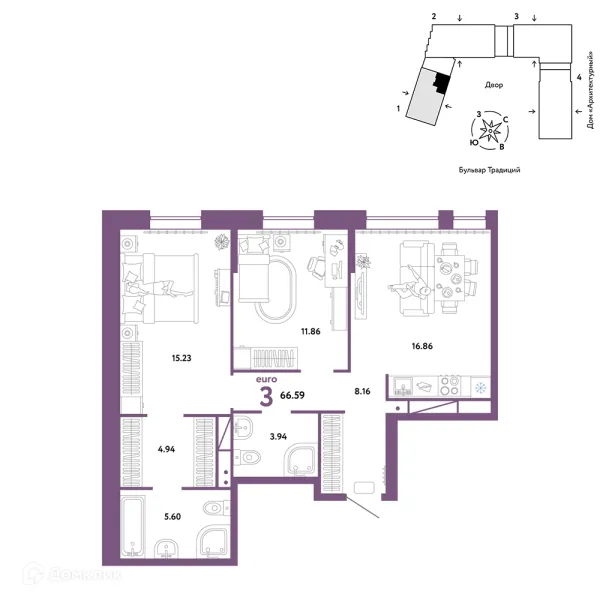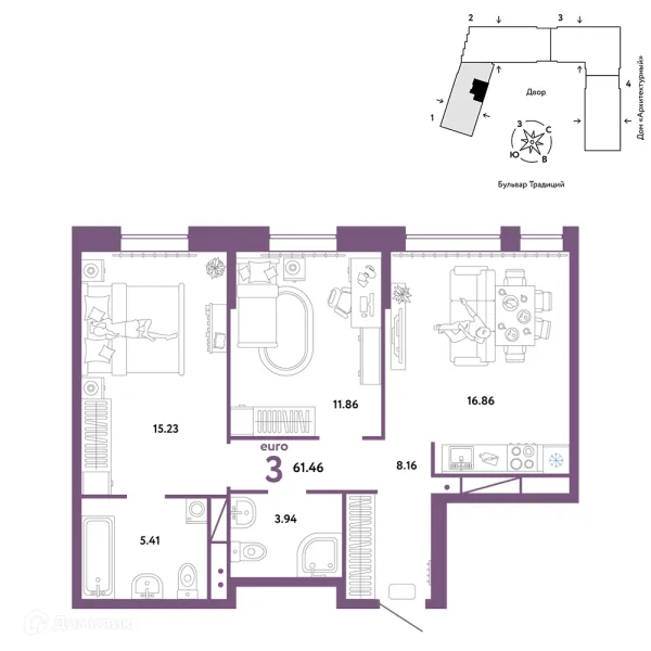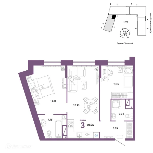3 комн. квартира в Тюмени в ипотеку от 60 738 руб/месяц