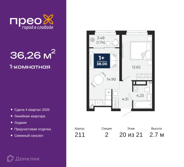 1 комн. квартира в Тюмени в ипотеку от 41 521 руб/месяц
