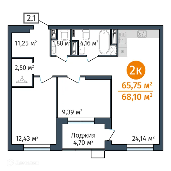 2 комн. квартира в Тюмени в ипотеку от 68 769 руб/месяц