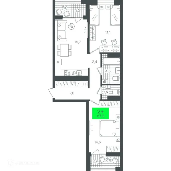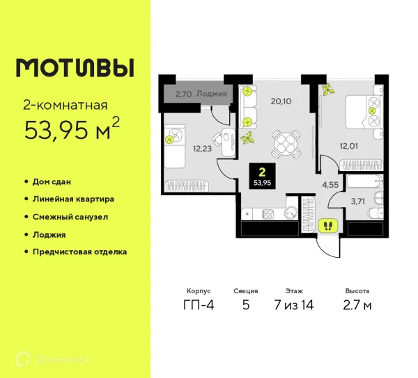 2 комн. квартира в Тюмени в ипотеку от 54 799 руб/месяц