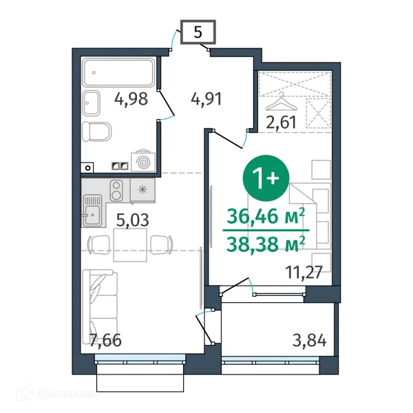 1 комн. квартира в Тюмени в ипотеку от 43 918 руб/месяц