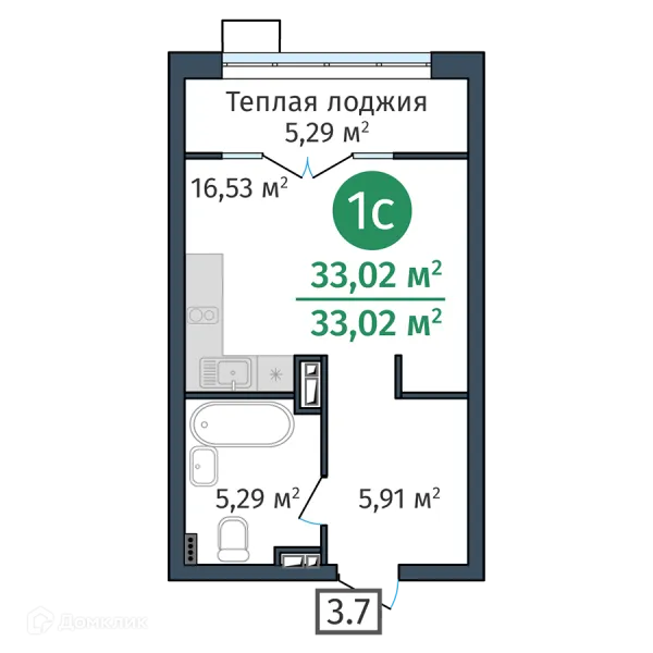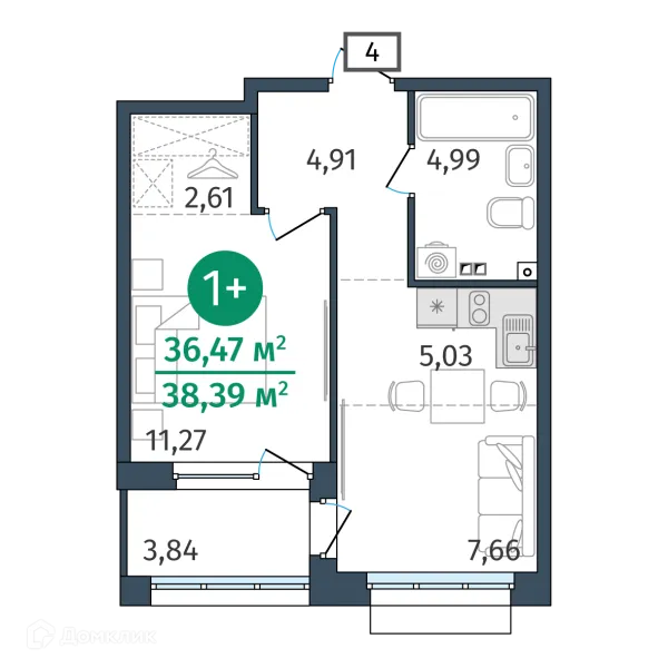 1 комн. квартира в Тюмени в ипотеку от 43 515 руб/месяц