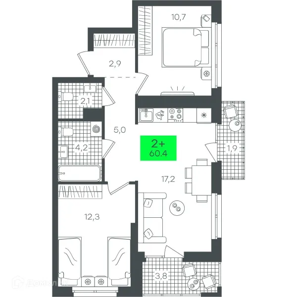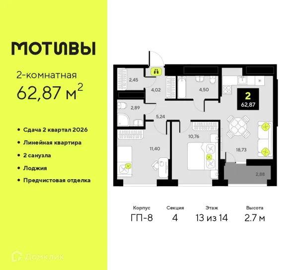 2 комн. квартира в Тюмени в ипотеку от 54 655 руб/месяц
