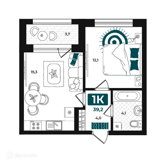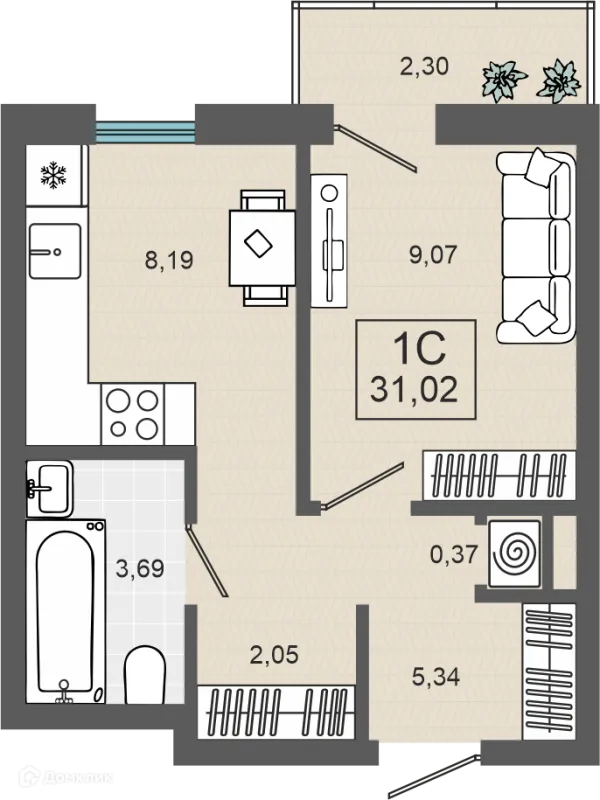 1 комн. квартира в Тюмени в ипотеку от 31 828 руб/месяц