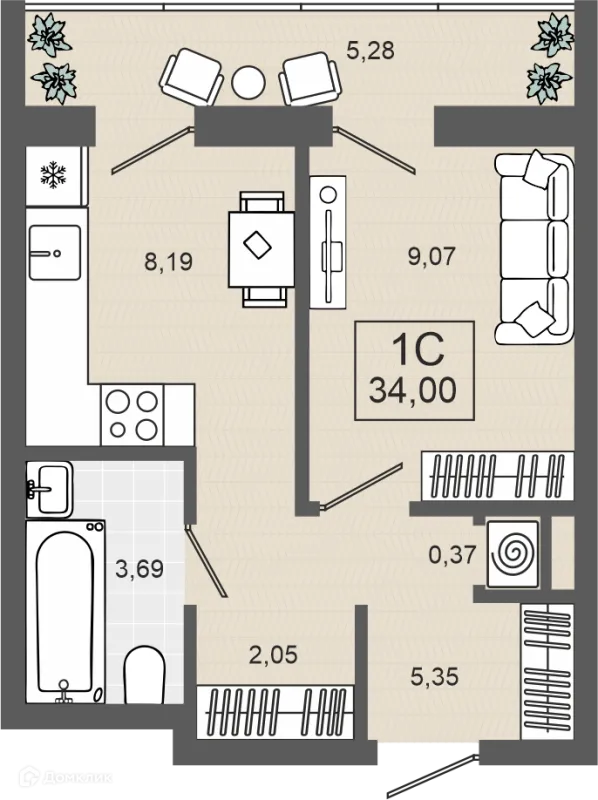 1 комн. квартира в Тюмени в ипотеку от 59 048 руб/месяц
