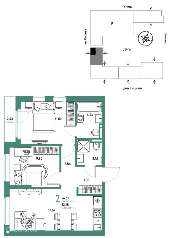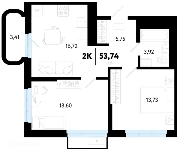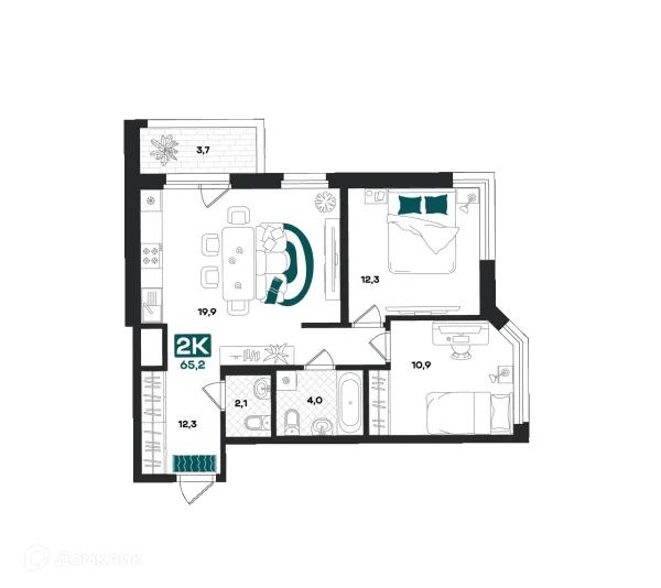 2 комн. квартира в Тюмени в ипотеку от 54 655 руб/месяц