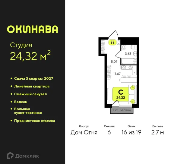 1 комн. квартира в Тюмени в ипотеку от 29 524 руб/месяц
