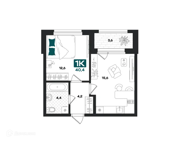 1 комн. квартира в Тюмени в ипотеку от 40 325 руб/месяц
