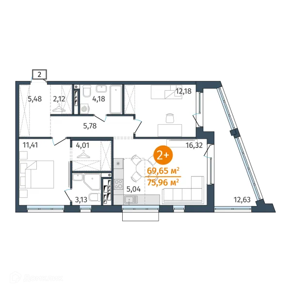 2 комн. квартира в Тюмени в ипотеку от 80 651 руб/месяц