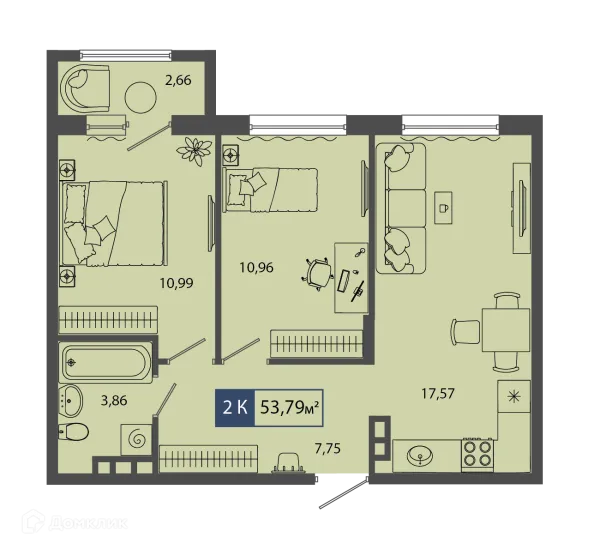 2 комн. квартира в Тюмени в ипотеку от 53 647 руб/месяц