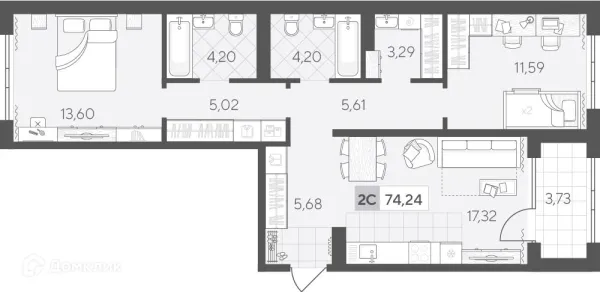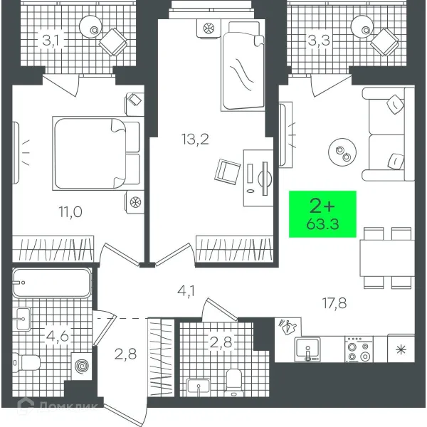 2 комн. квартира в Тюмени в ипотеку от 68 013 руб/месяц