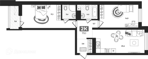 2 комн. квартира в Тюмени в ипотеку от 56 815 руб/месяц