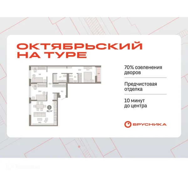 3 комн. квартира в Тюмени в ипотеку от 69 417 руб/месяц