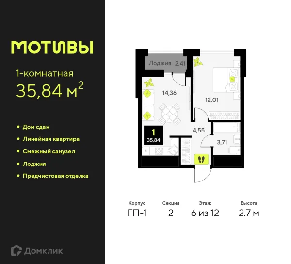 1 комн. квартира в Тюмени в ипотеку от 40 469 руб/месяц