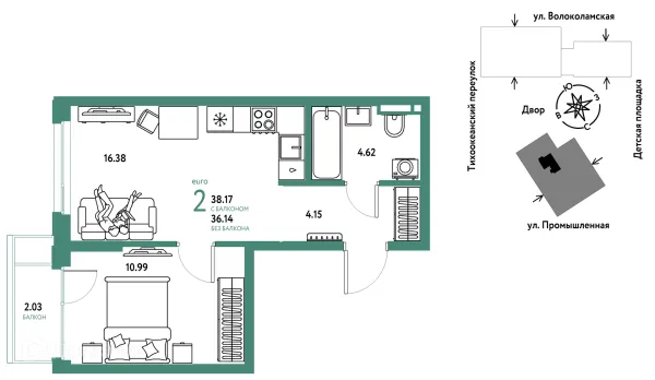 2 комн. квартира в Тюмени в ипотеку от 54 868 руб/месяц
