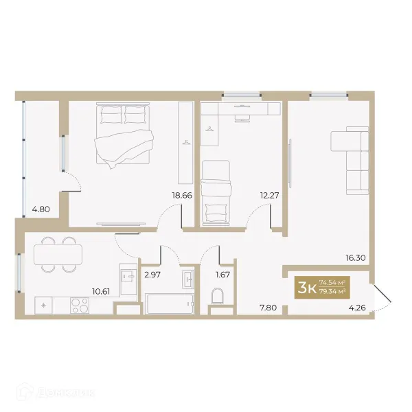 3 комн. квартира в Тюмени в ипотеку от 68 081 руб/месяц