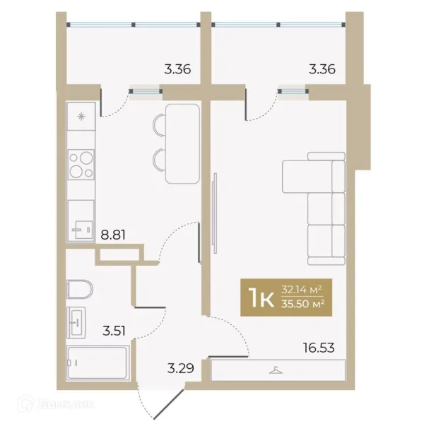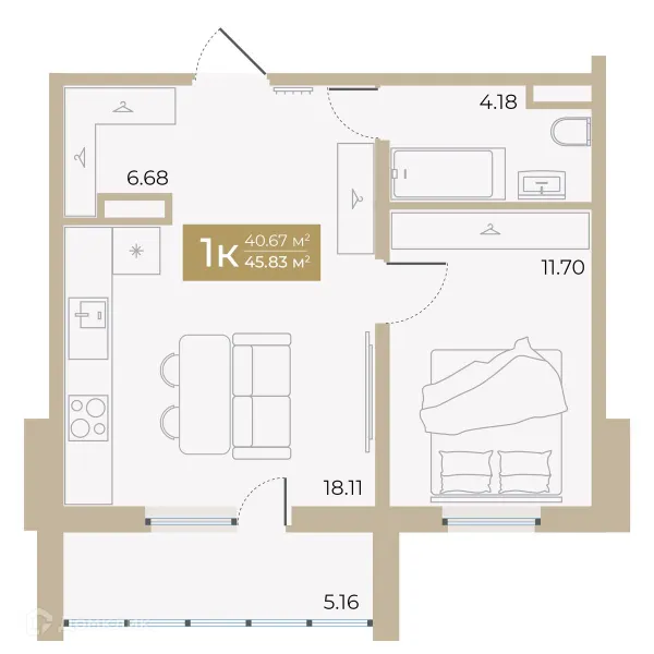 1 комн. квартира в Тюмени в ипотеку от 58 760 руб/месяц