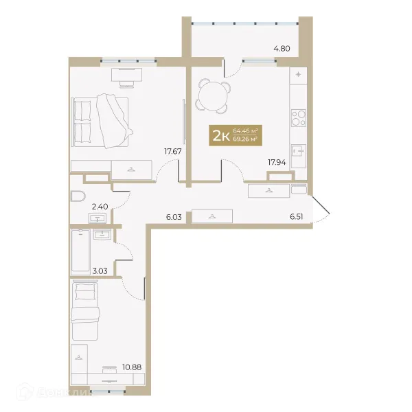 2 комн. квартира в Тюмени в ипотеку от 67 689 руб/месяц