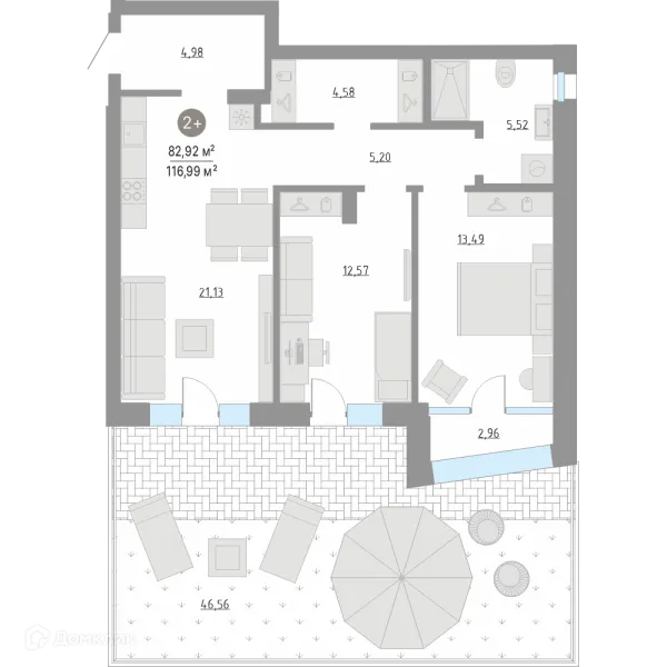 2 комн. квартира в Тюмени в ипотеку от 81 522 руб/месяц
