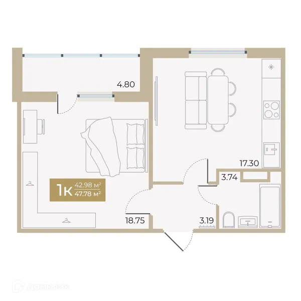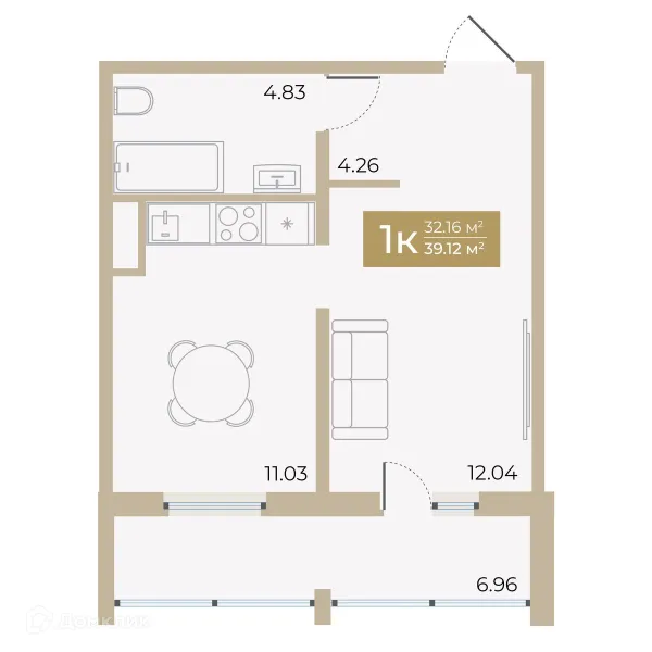 1 комн. квартира в Тюмени в ипотеку от 48 300 руб/месяц