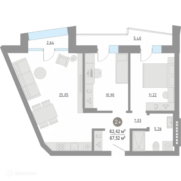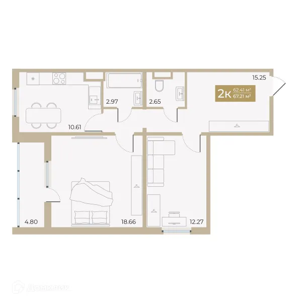 2 комн. квартира в Тюмени в ипотеку от 67 379 руб/месяц