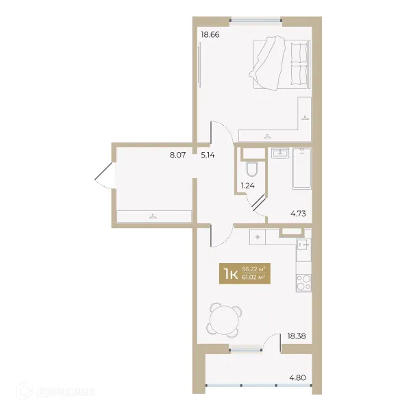 1 комн. квартира в Тюмени в ипотеку от 58 976 руб/месяц