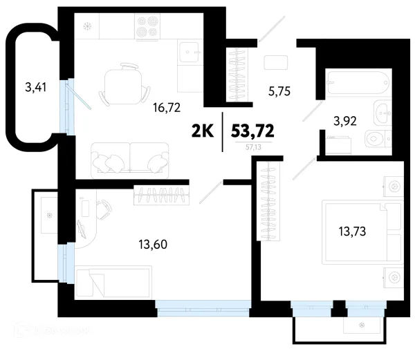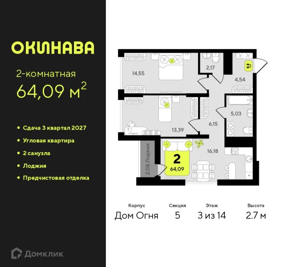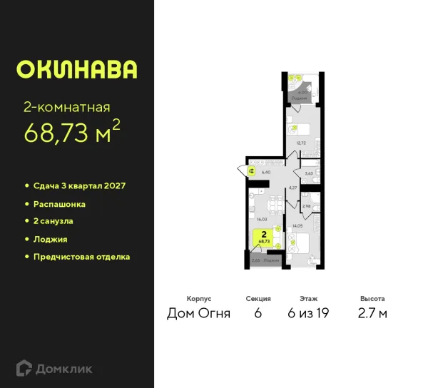 2 комн. квартира в Тюмени в ипотеку от 72 514 руб/месяц