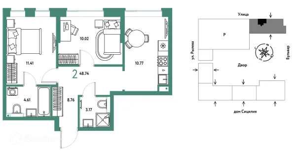 2 комн. квартира в Тюмени в ипотеку от 59 048 руб/месяц