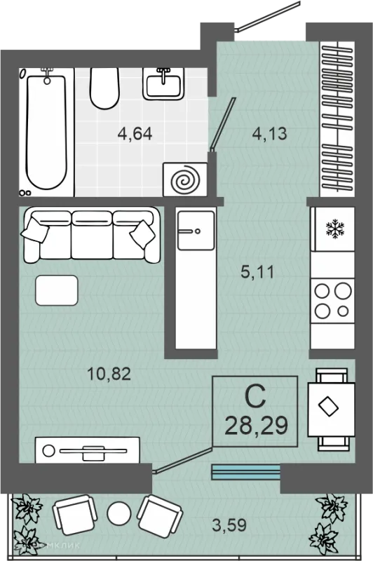 Студия квартира в Тюмени в ипотеку от 34 204 руб/месяц