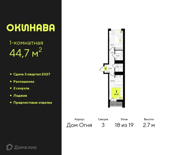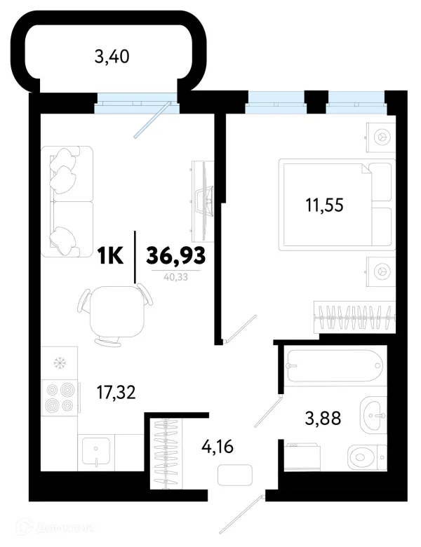 1 комн. квартира в Тюмени в ипотеку от 38 813 руб/месяц