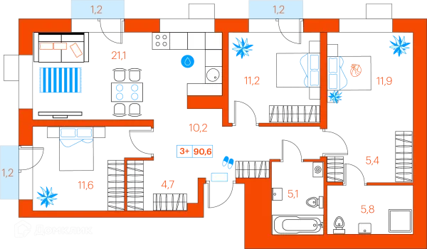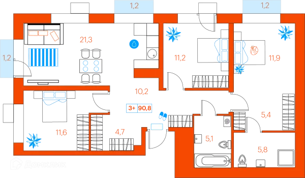 3 комн. квартира в Тюмени в ипотеку от 74 223 руб/месяц