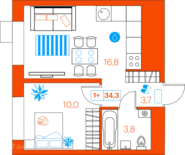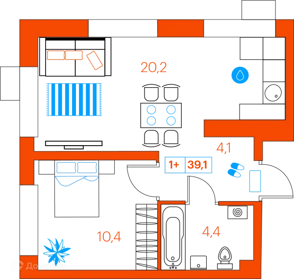 1 комн. квартира в Тюмени в ипотеку от 39 756 руб/месяц