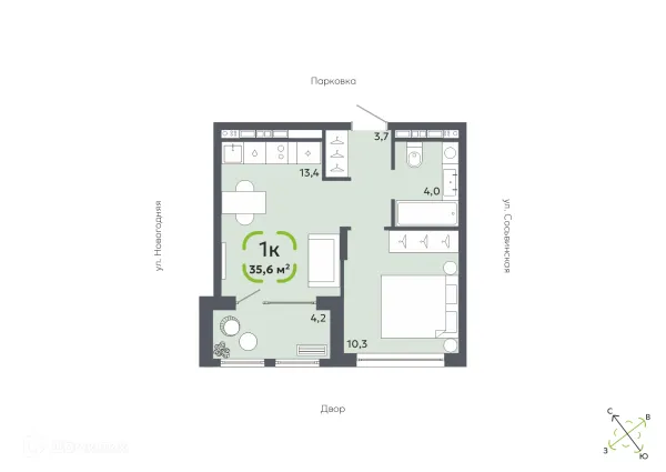 1 комн. квартира в Тюмени в ипотеку от 35 212 руб/месяц