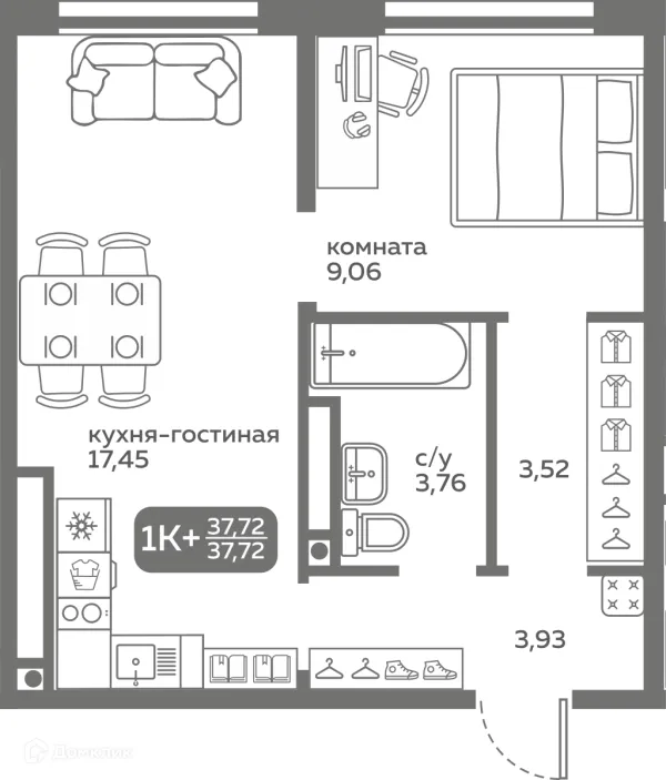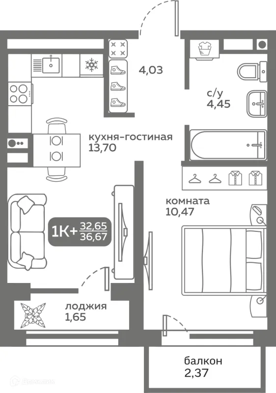 1 комн. квартира в Тюмени в ипотеку от 37 805 руб/месяц