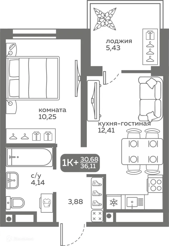 1 комн. квартира в Тюмени в ипотеку от 41 621 руб/месяц