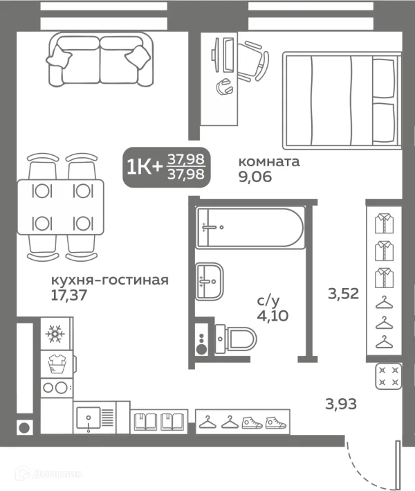 1 комн. квартира в Тюмени в ипотеку от 38 237 руб/месяц