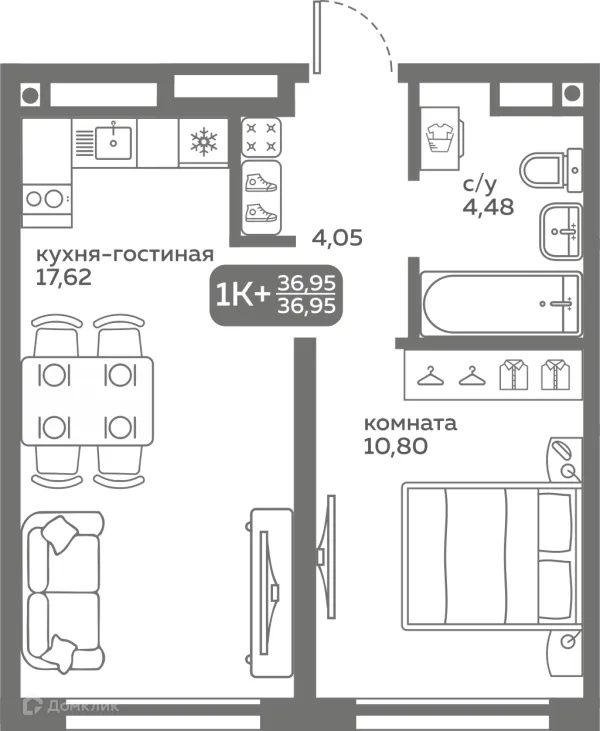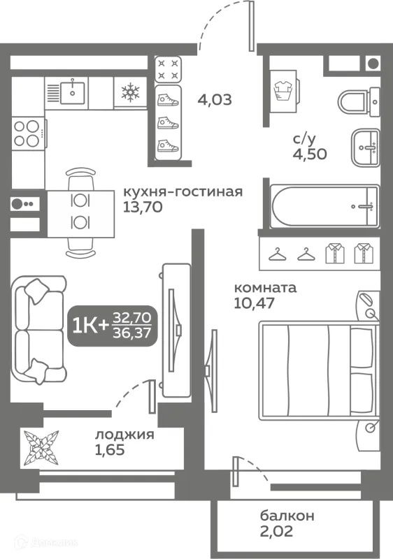 1 комн. квартира в Тюмени в ипотеку от 37 373 руб/месяц