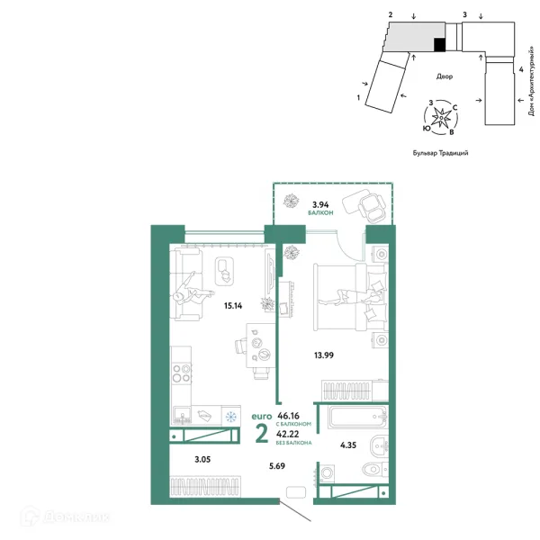 1 комн. квартира в Тюмени в ипотеку от 76 330 руб/месяц