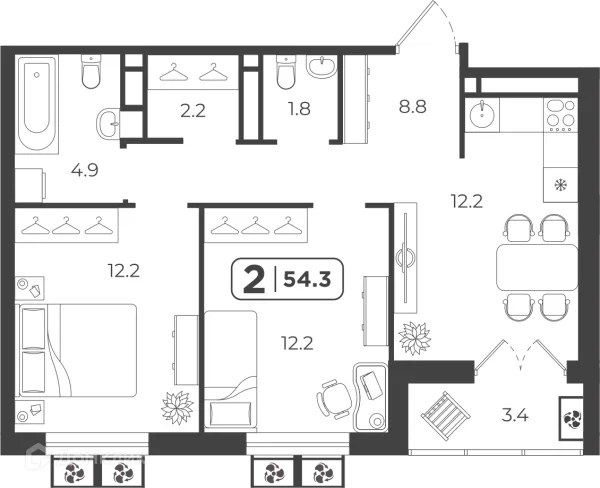 2 комн. квартира в Тюмени в ипотеку от 68 409 руб/месяц