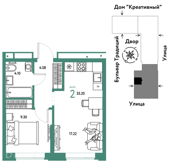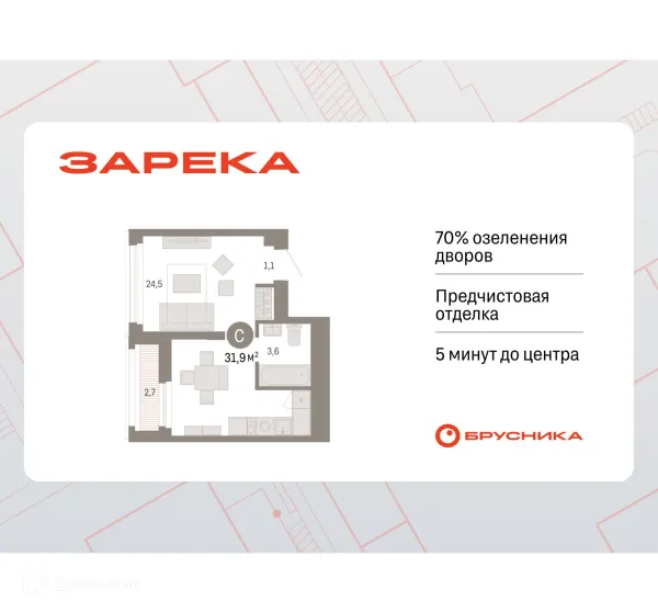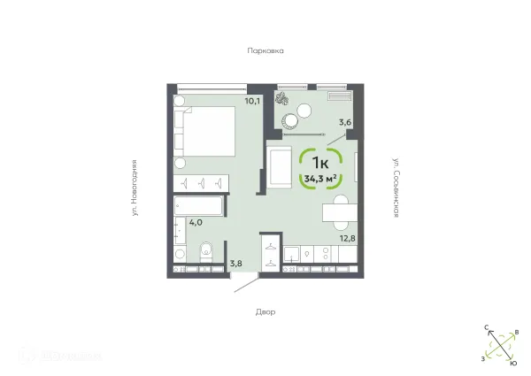 1 комн. квартира в Тюмени в ипотеку от 34 564 руб/месяц